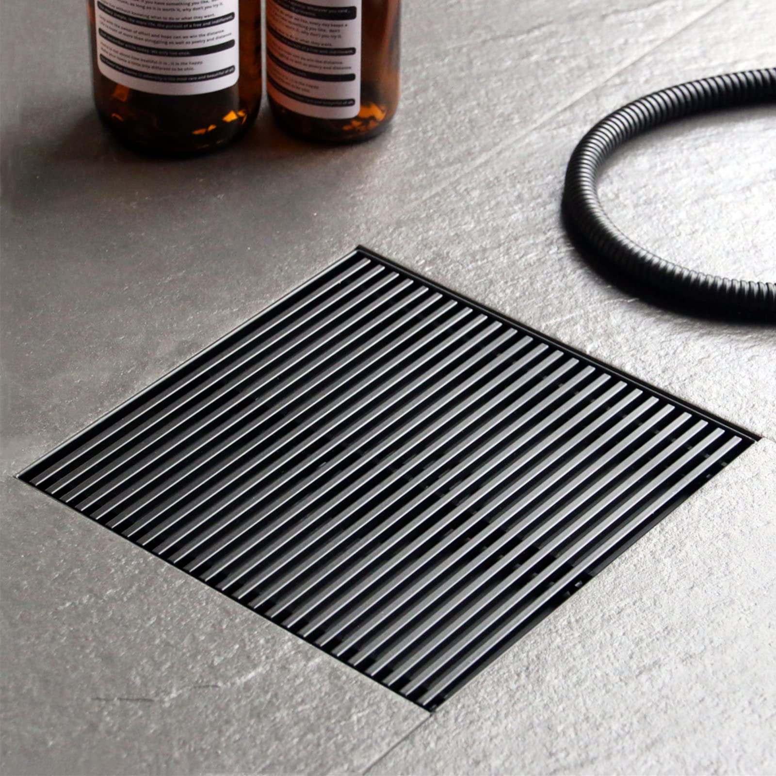 Sharpeye 8 Inch Square Shower Drain with Removable Wedge Wire Pattern Grate, Matte Black 304 Stainless Steel Shower Floor Drain for Bathroom, CUPC Certified, Includes Hair Strainer