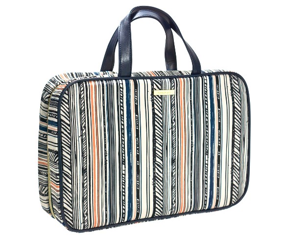 Description The Sophia Joy Stripe Grid weekender bag is just what you need to store all of your toiletries and make-up essentials on a long weekend trip. The bag has a convenient carrying handle, a full zip closure and compartments with zippers on the inside to safely store your items.Care & Cleaning: Spot or wipe cleanLarge makeup bag lets you easily bring all of your toiletries with youSeparated compartments keep everything organizedZipper closure keeps everything secure and prevents spills Estimated shipping dimensions: 9.5INCH X 3.7INCH X 12.7INCH DPCI : 037-07-0352 UPC : 079642098027 TCIN : 50741357 Estimated shippimg weight: 0.85POUND