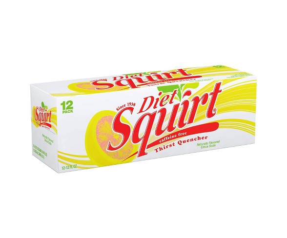 Description Squirt is a unique grapefruit drink that is refreshing, crisp and has the balanced 'zip' from the grapefruit flavor and sweetness of soda. Squeeze in some good times with the bright flavor of Diet Squirt. The fresh grapefruit and citrus taste of Diet Squirt has zero calories per 12 fl oz serving. It's just right for enjoying as a casual, caffeine free refresher or the perfect complement to your favorite spirit as a cocktail mixer. When you need a soda to quench your thirst, no other soda will do. Only Squirt provides a light and crisp pop of grapefruit flavor that instantly satisfies your craving. Squirt is the ultimate thirst quencherContains: Does not contain any of the 8 major allergensMay Contain: Does not contain any of the 8 major allergensStore: In a Dry location at Room temperatureDietary Needs: DietForm: LiquidState of Readiness: Ready to drinkPackage type: Multi-pack single servingsExterior container material: Paper or cardboardCarbonation type 1: CarbonatedNet weight: 144.0 ouncesPackage Quantity: 12Beverage container material: Paper or cardboardOne 12-pack of 12 fluid ounce cansNaturally flavored citrus sodaZero calories per 12 fl oz servingAuthentic Thirst QuencherCaffeine FreeUnique Grapefruit Soda Estimated shipping dimensions: 15.67INCH X 4.9INCH X 5.2INCH DPCI : 271-30-1403 UPC : 078000017168 TCIN : 12965387 Estimated shippimg weight: 10.18POUND