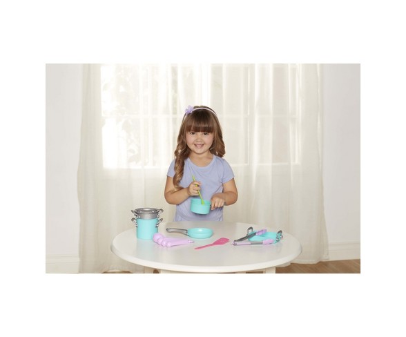 Description Honestly Cute Home role-play toys allow your child to shop, clean and cook alongside mom and dad. Kids can use their imaginations while pretending to do everything that mom and dad do at home. Realistic and adorable designs make for perfect open-ended play! Cook, clean, shop and more-and SO cute! Ages 3+Time for your little one to whip up a yummy gourmet meal with the Honestly Cute In the Kitchen Cookware Set. Mindfully designed for hours of imaginative pretend-play, this 14pc set comes adorably boxed with all the culinary play tools your little chef will need! Durable & super easy-to-wipe clean!Number of Pieces: 14Dimensions (Overall): 10 inches (H) x 12.25 inches (W) x 4.25 inches (D)Suggested Age: 3 Years and UpMaterial: Plastic, ABS (acrylonitrile butadiene styrene)Perfectly Sized for Little Hands & Play KitchensPots'n'pans, tongs, measuring spoons, ladle & more!Reusable Box for Easy Storage14pc SetIdeal for ages 3 & up Estimated shipping dimensions: 10.0INCH X 10.0INCH X 4.25INCH DPCI : 086-05-1361 UPC : 039897843193 TCIN : 53176303 Estimated shippimg weight: 1.1POUND