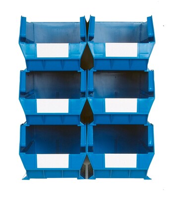 Description Organize your garage or storage area with these sturdy interlocking LocBin storage bins Keep your garage, tool storage area or garden shed clutter-free with these convenient wall storage bins by LocBin. Ideal for organizing small, easily lost parts and accessories such as tools, garden supplies and hardware, these blue bins feature an inte rlocking system that allows you to securely connect several bins for optimal organization and efficiency. Constructed of sturdy polypropylene, the storage bins include wall hangers for extra convenience. Their generous storage capacity allows you to kee p hammers, hoses and other items close at hand. Color: Blue Material: Polypropylene Dimensions: 7"H x 8.25"W x 14.75"L LocBin hanging bins have an interlocking feature that guarantees bins will stay attached to each other Wall mount rail system replaces expensive steel louvered panel systems Each row of bins can be removed from the wall mount rail LocBin complete wall mount bin system Includes the wall hangers Blue Polypropylene 7"H x 8.25"W x 14.75"L Keep clutter out of the way with these LocBin storage bins. These heavy-duty polypropylene storage bins are rail-mountable for convenient installation, and they attach to one another to save space. They're sized to hold all your small hardware and tools, from finishing nails to hand tools, keeping everything you need within reach.Declutter Your Garage or BasementThis set of six interlocking storage bins provides space to get small tools and hardware off your work bench. The wide, slanted opening makes it easy to grab what you want for any job. Large compartments allow you to sort by job or hardware type or create your own personal organization system.Keep Necessities Within ReachSort nails, bolts and other small hardware in these bins so that you never have to dig through another tool chest for the right fastener again. With all your hardware sorted and easily visible, you know when you have the right items for your job and when you need to go to the hardware store for more.Add Future Storage SpaceThese six blue storage bins provide ample space for basic home maintenance or small hobby tool collections, but the generic styling and rail-mount system make it easy to add more storage space when you need it. Build a complete home maintenance collection with additional bins, or add bins for car maintenance, hobbies and other tool-heavy projects. Specifications Color Family : Blue Bin & Tote Material : Polypropylene Height in Inches : 7 Depth in Inches : 14.75 Width in Inches : 8.25 Brand : LocBin Customizable : No Weight : 10.41 lbs. per Pack