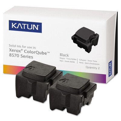 Description Katun® Solid ink stick in black color is ideal for 8570 printer and provides rich/vibrant colors with sharp image quality for all of your printing needs, sold as 2 per box. Yields up to 4300 pages per cartridge Black Replacement for 108R00727 For use with: Xerox Phaser 8570 laser printer Dimensions: 1.75"(H) x 2.63"(W) x 4.44"(L) Coverage: 5% Machine installation is simple, just drop in and ready to print Produce rich and vibrant colors with sharp image quality for all of printing needs, consistent reliability each and every time OEM compatible Specifications Cartridge Series : Xerox 8570 Yield Type : Standard Yield Page Yield (Up to) : 4,300 Ink/Toner Pack Size : 1/Pack Ink/Toner Cartridge Type : Original Wide Format Compatibility : No High Yield : No Multipack : No Brand : Katun Customizable : No Weight : 1.00 lbs. per Box Compatible Printers This product is compatible with these printers: Xerox Phaser 8570 ColorQube 8570/N ColorQube 8570/DN ColorQube 8570/DT ColorQube 8580/N ColorQube 8580/DN ColorQube 8580/DT