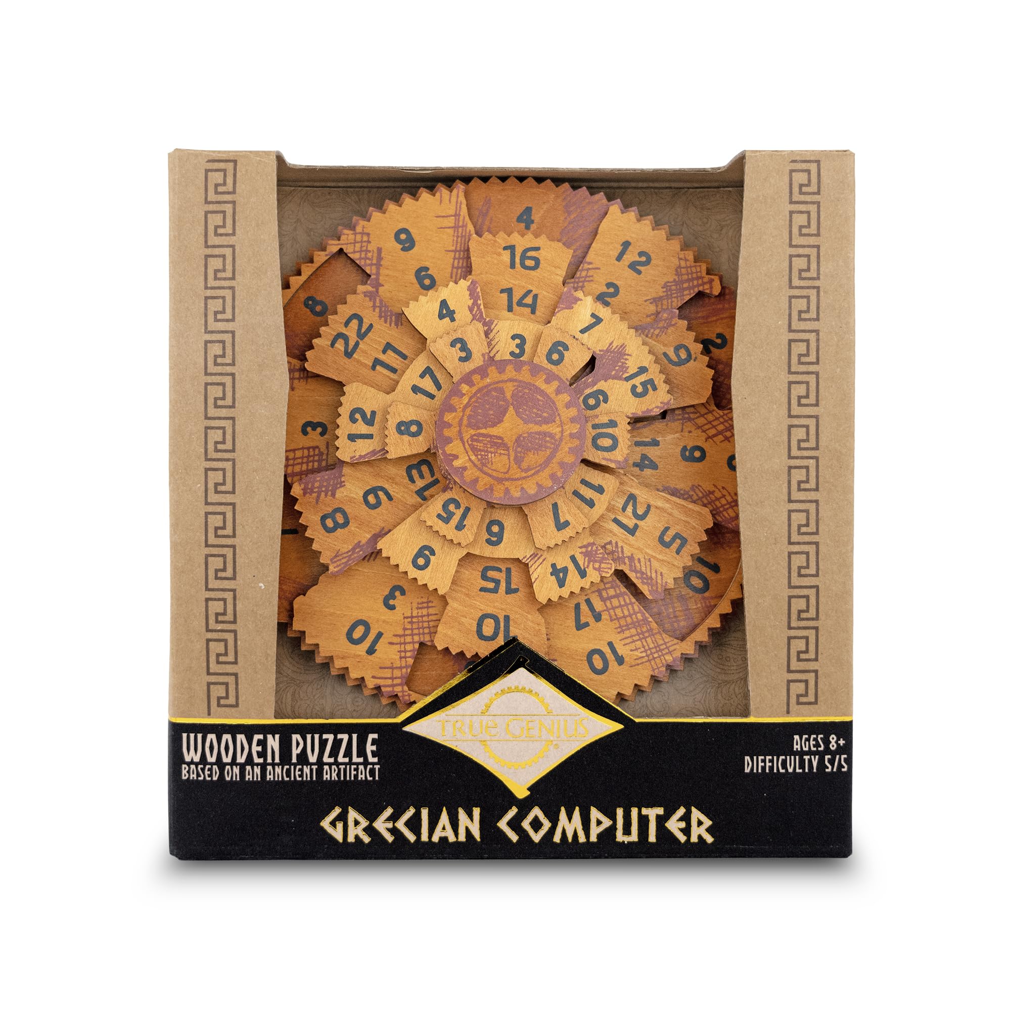 The Grecian Computer Mechanical Math Puzzle is a compact, laser-cut wooden brainteaser inspired by the ancient Antikythera Mechanism. Designed for intermediate solvers, it challenges users to align layered gears so each radiating column sums to 42 simultaneously. Rated 5 stars for difficulty, it doubles as an elegant desk display and makes a perfect gift for STEM enthusiasts, engineers, and history buffs. Crafted by Project Genius, a woman-owned U.S. company committed to social impact, this puzzle blends historical inspiration with modern mental fitness.