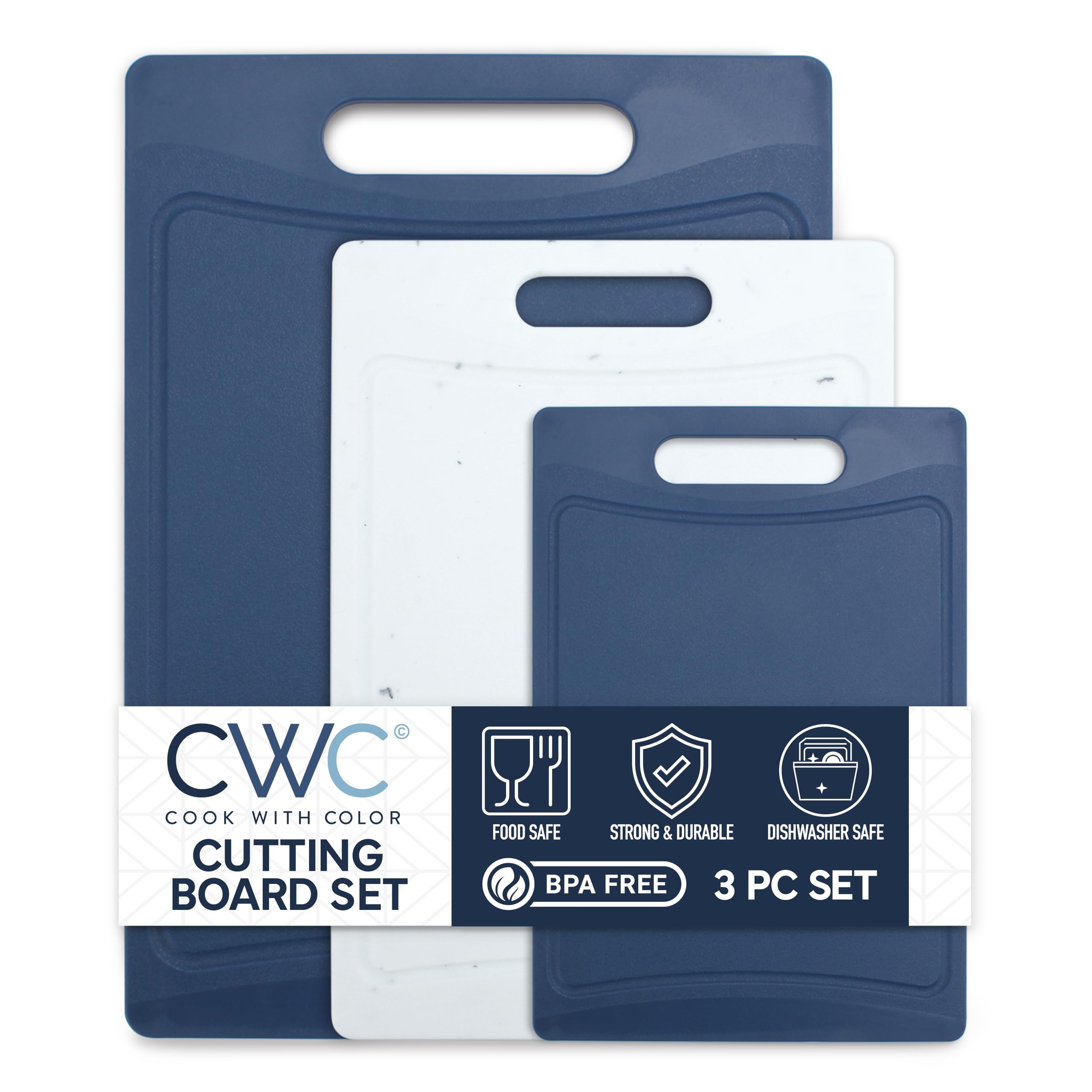 COOK WITH COLOR Non-Slip Cutting Board Set – Kitchen Essentials with Easy Grip Handle for Meat, Veggies, and Fruits, 3 Cutting Boards, Blue and White Marble