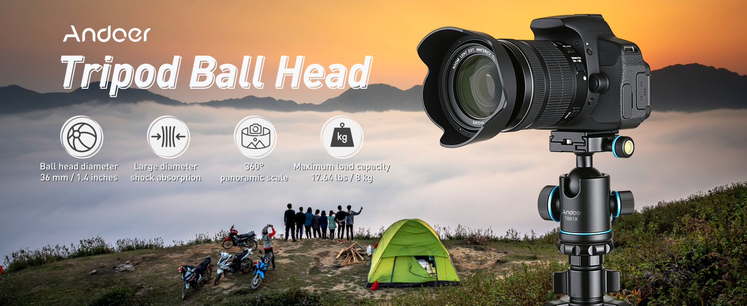 The Andoer Camera Tripod Ball Head combines a robust 8KG load capacity with smooth 360-degree swivel control via three independent knobs. Its all-metal anodized aluminum construction ensures durability and a premium feel, while the Arca-type quick-release plate offers fast camera attachment. Compact and lightweight, this ball head is designed for professional photographers and enthusiasts seeking reliable, precise positioning in a portable package.