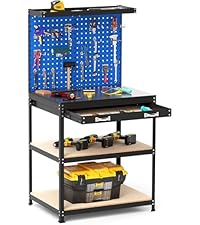 The COSTWAY Workbench is a robust and versatile workstation designed for professionals and DIY enthusiasts alike. With a heavy-duty metal frame and a remarkable load capacity of 435kg, it features a spacious pegboard, two drawers, and multiple hanging accessories to keep your tools organized and easily accessible. Measuring 121 x 61 x 156 cm, this workbench is perfect for any workshop or garage, ensuring stability and efficiency for all your projects.