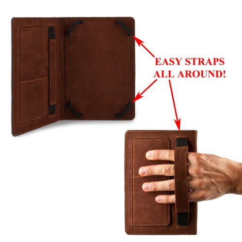 Vangoddy Mary Portfolio CaseKeep your Tablet safe and secure while optimizing everyday productivity, whether your are on the couch, at your desk, in bed or on a plane, no matter where you are. It's got a built-in stand for operating in landscape mode or even in typing mode, this lets you use your tablet comfortably to type documents such as emails, homework or even class notes. The open-frame design allows easy access to the controls and built-in ports on the tablet - On/Off switch, volume control, DC-IN, Audio, HDMI, USB, mini-USB and SD card ports. Protects from Bumps Dents and Scratches (Soft interior to prevent scratches) // Hard Cover Design, Feels like a real book. Access to all ports and buttons. // Build in stands allows you to easily type, watch movies and navigate your device at your best comfort // EZ Strap Feature, allows you to hold your device securely while in use preventing the device from slipping off your hands. Overall this is an everyday use case that will keep your tablet safe whenever and wherever you go! (Exterior material: Faux Executive Leather, Interior material; soft suede. Case was stich with strong durable fine nylon material to prevent from the stitching falling off and provide longer durability of the case) Includes:- Includes a Slim Travel Wireless Bluetooth Keyboard -Includes a high quality foldable stand fits anywhere made strong and sturdy. Adjustable for Multi Angles. Suitable for Tablet Smartphones and eReaders Devices. -Includes a Stylus Pen with a Red Laser Pointer and White LED Light (batteries included) Compatible with: -Amazon Kindle Fire HDX 7-inch Tablet