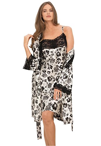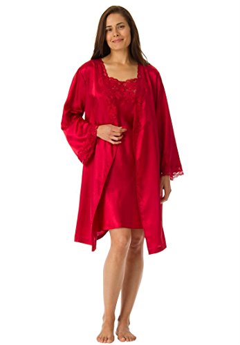 Plus Size Lingerie by Jessica London. Short satin peignoir set makes dreams come true! This set is all about sweet romance. We offer the best price and fit in plus size peignor sets. elegant sleeveless gown has pretty stretch lace bodice and straps; 38" long long-sleeved robe has feminine lace inset at collar and sleeve hem; 39" long full sweep skirt washable polyester satin in solids and prints; USA or imported Women's plus size peignoir sets & plus size sleepwear in sizes M(14W-16W), L(18W-20W), 1X(22W-24W), 2X(26W-28W), 3X(30W-32W), 4X(34W-36W), 5X(38W-40W)