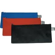 Single-pocket zippered canvas pouch with end tab for storing pens, pencils, and other supplies. 9-1/2" x 4-1/4". In assorted colors.