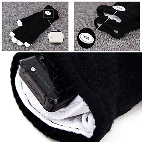Made of polyester of good air permeability. These gloves are not washable Great for concerts, raves, clubs, hip-hop, etc. A fun toy & gift for friends. Specifications: Color: Black Length: about 21cm Middle finger length: 7.5cm Palm width: 7.5-8cm Material: 95% Acrylic Fibers Battery: 2 * CR2032(not included) Item weight: 75g Item size: 21 * 10 * 1.0cm Package size: 24 * 16.5 * 2.5cm Package weight: 77g Note: Please be careful when you put on and take off these gloves because there are wires in the gloves. Package including: 1 * LED Light Gloves(pair)
