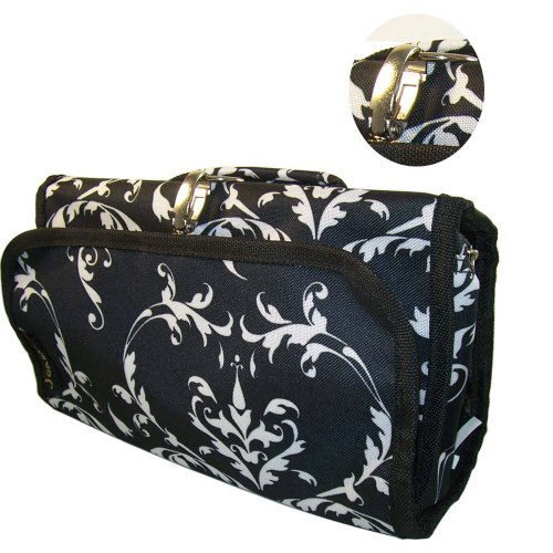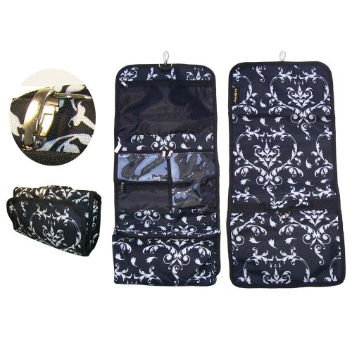 Open size : 24"(L) x 11 1/4"(W) x 2 1/4"(D) Close size : 8" (L) x 11 1/4" (W) x 2 1/4" (D) One large mesh zippered compartment Three clear plastic zippered compartment One large expandable zipper pouch