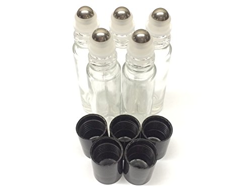 Clear Glass 10 ml Roller Bottles each with a stainless steel ball insert & cap.