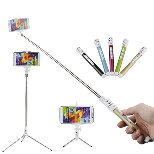 Features: Multi-function:monopod/tripod/remote shutter stick Extremely light weight, hard and durable usage Perfect for travel,easy carry in any bag or coat pocket Easy mount on, fully adjustable to the desired angle,length 7.71 pounds Max. Load 32.80 feet remote control distance. Built-in Bluetooth controller on the Monopod Built-in rechargeable battery Specification: Stretched length: 31.49 inch Material: Stainless Steel and Plastic Max Load: 7.71 pounds Battery Capacity: 120mAh Standby Time: 6 days Working Time: 40 hours Remote Control Distance: 32.80 feet Charge time: not less than 350 times Compatible with Samsung Note4 n910 Note3 n9005 n9000 Note2 i9250 Note1 i9220 S5 g900f g900h S4 i9500 S3 i9300, iPhone 6 6 Plus 5s 5c 5 4s 4, HTC G14 Rezound G22, Sony Xperia Z3 Z2, Google Nexus. Package include: 1x Remote shutter stick 1x Extendable Monopod 1x Phone Holder 1x Extendable tripod 1x USB cable 1x Soft pouch