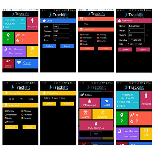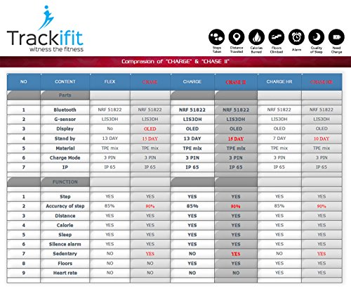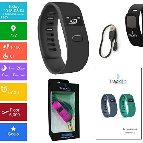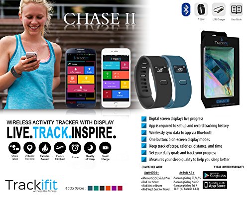 Size: Large (6.38-8.35 in) Witness the Fitness of your life with Trackifit© CHASE II® Fitness Tracking Band / Bracelet / Watch Advanced activity wristband that tracks your steps taken, distance traveled, calories burned and floors climbed. Stay connected throughout the day with fitness stats and Caller ID on the OLED display. And when the day is done, automatically monitor your sleep and set a silent, vibrating alarm. Whether you're at the office or on the go, Chase II wirelessly syncs your stats to your smartphone and computer to help you find the motivation you need to achieve your goals. Feature:1. The chip is from Nordic nRF51822 2. LIS3DH G-sensor 3. Special USB charging port4. APP for Android 4.3 or higher Function we can satisfy:Activity Tracking steps taken, distance traveled, calories burned, floors climbed Auto Sleep + Silent Alarm Automatically monitor how long and how well you sleep and set a silent, vibrating alarm. Exercise Tracking Record workouts in Exercise Mode, then see detailed workout summaries on your Smartphone. OLED Display Bright display shows daily stats and time of day right on your wrist. All-Day Wear Comfortable elegant appearance smart wristband Sedentary remindersedentary reminder function to keep you fit In the Box• Trackifit CHASE II Activity Tracker• USB Charging cable• Getting Started Guide (Product Manual) Product DetailsSize: Large (6.38-8.35 in)Product Dimensions: 8.3 x 0.8 x 0.4 inches ; 0.8 ouncesShipping Weight: 5.6 ounces UPC: 711978994146Item model number: CHASE II