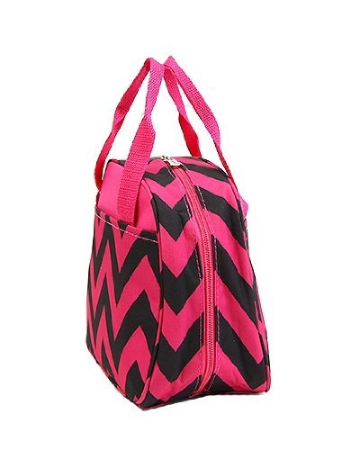This conveniently sized microfiber lunch bag measures 10.0" x 8" x 5.0" and has insulated lining and multiple pockets. The zipper closes up the lunch bag. Fun chevron pattern makes this lunch bag a must have for work, school or leisure!