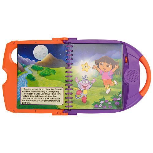 The Dora The Explorer Story Reader Box Set features: Includes one Story Reader, one cartridge and one 25-page illustrated book, Dora the Explorer: The Shy Little Star Story Reader reads the text aloud so children can follow along Story Synopsis: Dora and Boots meet a shy little star that is too nervous to shine in his constellation. They convince the star that he would look great shining in the sky. Soon, Dora and Boots are on their way to Star Mountain to help the star get back into the sky and shine! Volume control Page-turn recognition Written by Brian Houlihan Illustrated by Victoria Miller, Dave Aikins, A & J Studios, Bob Berry, Tom Mangano and Bob Roper Original music composed by Matthew Scott Dora is performed by Caitlin Sanchez Story Reader dimensions: 10 x 8.5 inches Book dimensions: 6.5 x 7.5 inches Published 2010 by Publications International, Ltd.