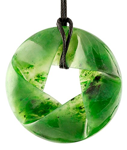 Masterfully Carved Exquisite Star Circle pendant. Inspired by the Mobius Strip (a continuous loop with one side and a single edge). It represents the willingness to move forward with the changing cycles of life. JADE get its name from the Spanish "piedras de ijadas," (stones of the loins). It has been used throughout time for tool making and for adornment; to many it has a special spiritual significance and it is believed to have healing qualities (esp for the kidneys). The Latin translation of "piedras de ijadas" is "lapis nephriticus" (nephrite stone). It came to be called simply, nephrite. GREENSTONE is what New Zealanders call nephrite jade. POUNAMU is the Maori word for the nephrite jade (greenstone) found in Aotearoa (New Zealand). SIZE: 44.46mm diameter (approx:4.5cm) Inches: Approx 1.7 diameter THICKNESS: ranges between 5-10mm (0.5-1.0cm) Inches: (.19-.43)