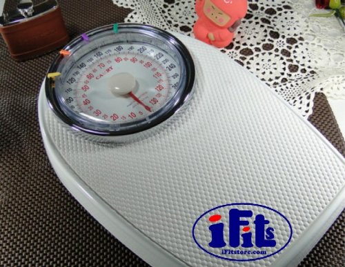 iFits mechanical bathroom scale is a heavy duty construction and a non skid vinyl mat. The extra large diameter dial allows for easy readability even for tall people. They feature a white, baked-enamel finish and personal colorful indicators to mark one person's or a whole family's weights. It has kilos and pounds reading on scale. The solid chrome platform makes it easy to look at and easy to clean. The scale is designed for personal use, in fitness centers, and in health care facilities