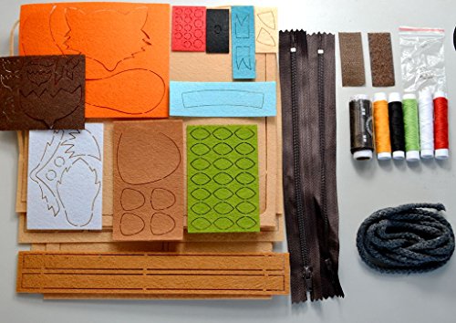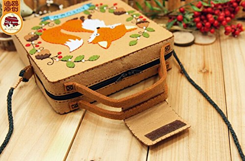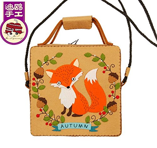 GUart DIY Polyester Felt Nonwoven Fabric Craft Kit, DIY sewing kit, Whimsy Kit, make your own bag/doll/ figurine (red fox satchel/bag)