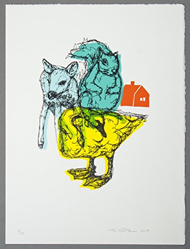 This print that I call, "Home" was created for printmaking project/ exhibition called, "Skagit Women Print" that is a collaboration of prints by Skagit Valley printmakers. I made a few extra prints for the shop, but the rest are in private collections and framed for exhibitions. The Skagit Valley (where I was raised and currently live) is beautiful farmland that's located an hour north of Seattle, WA and about an hour south of Vancouver, BC. The light and color is incredible in the valley along with the fawn and fauna - all of these things influence my work that you see in my KLTworks shop. The photos are from the exhibit at the Anchor Art Space in Anacortes, WA. This print is an original serigraph, screen printed by hand in my Northwest studio. This print comes from a run of 40 and is a 7 color, hand pulled print. Because these prints are printed by hand, they may have small inconsistencies from print from print, making them truly one of a kind (which adds to their charm). The swan, deer, & squirrel image was originally drawn by me using thread & free motion sewing. The water-based ink is mixed by hand in small batches: green, yellow, light blue, poppy red. The print comes unframed but could fit in standard 16" x 20" with a mat. Pictured is a custom frame with print floating on a solid mat. Prints are rolled in a heavy shipping tube to make sure they get to you safely.