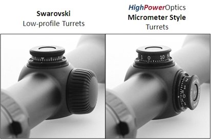 The Micrometer Knobs have click marks and elevation / windage values printed completely around the knob. Using numerical click values, Swarovski owners can now easily dial elevation / windage hold-offs, record zeros for different ammunition, and dial 5.0 mrad elevation hold-offs to extend the range of BRX/BRH reticles. Long-range shooters can accurately dial large hold-offs - larger than Ballistic Turret knobs will allow.