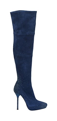 Loriblu Blue Suede Platform With Crystals Tall Over Knee Boots | Desertcart Taiwan