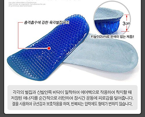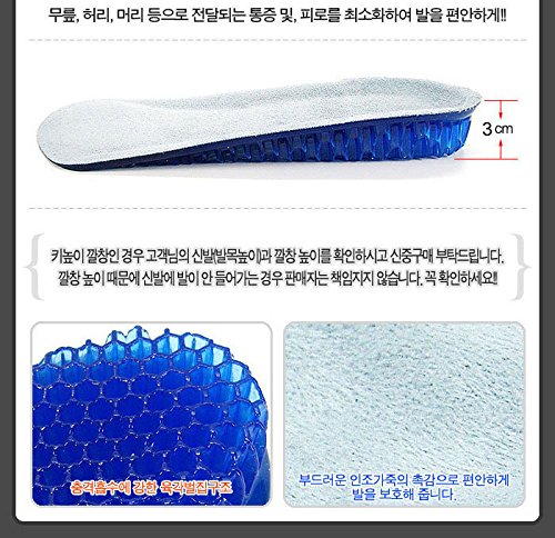 Please refer to the size lines on the bottom of the insoles to cut into the size you want.. The Half type increased insoles are mainly made of high-grade soft silicone with good damping effect for comfortable to wear, and fit perfectly in your shoes and have a removable layer so that your height. Features - Color: mainly blue. - Material: durable soft springy silicone and flocked fabric. - Max. Height: 4.5cm (2-layer). - Half type design makes the increased insoles suitable for both mens and womens shoes. - 100% brand new and hig - 2-layer detachable design: you can adjust the height by attaching or detaching the removable insert, allowing you to increase your height either 2.8cm (one-layer) or 4.5cm (2-layer). - Can effectively prevent your foot soles slipping inside your shoes, and increase the comfort of your shoes. - Soft springy and comfortable silicone insoles with good damping effect, helping to relieve your foot pain and fatigue when walking and suitable for standing a long time. - Invisible design makes nobody notice you wearing them. - No deformation, no wear and tear, suitable for different styles of shoes, such as boots, leather shoes, athletic shoes. -------------------------------------------------------- Package Including 1 * 4.5cm 2-Layer Adjustable Height Unisex Half Type Silicone Invisible Increased Insoles Shoe Pads - One Pair (Blue)