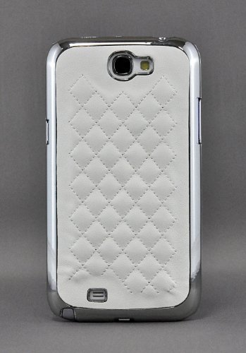 LiViTech(TM) C Design PU Leather Silver Chrome Bling Snap on Hard Case for Samsung Galaxy Note 2 N7100 (122) (White)