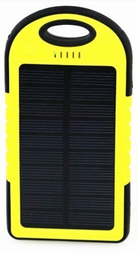 When you hit the road, take along this 5000mAh waterproof solar power bank for cellphones and other USB devices with closable dual USB charging ports allowing you to charge two devices at the same time. Features a emergency LED flashlight, 4 LED charging indicator lights, environmentally friendly silica gel and ABS+PC materials, water-resistant and dustproof. Compact size for portability. Comes with a carabiner and 1ft micro USB cable.
