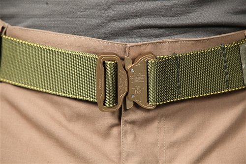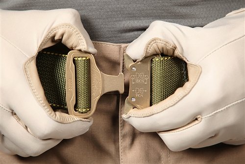 The BAT belt is your new go-to, hard use, Cobra Buckle rigger belt. BAT stands for "Ballistic Attachment of Tether". Don't go airbone without one, and don't ever let your belt be the weakest link in the chain again. Your life may depend on it, take it seriously. It's super strong parachute grade construction includes a built in loop near the buckle that's made to accept a carabiner. (Popular with Aircrews and K-9's) You'll feel better every day once you're wearing one of these. It's a fact. If you're not convinced yet, our 120 day trial period lets you get intel the only way you really trust it, from the voice in your head. Heads Up: The Multicam version is stiff enough for use as a gun belt, the other Black and Green colors are more flexible parachute webbing with no plastic reinforcement. Some people carry with them, but its not one of the stiff type gun belts.