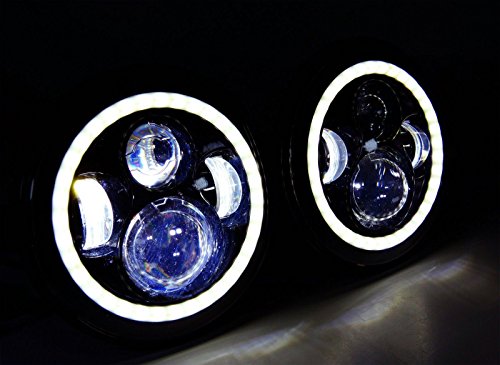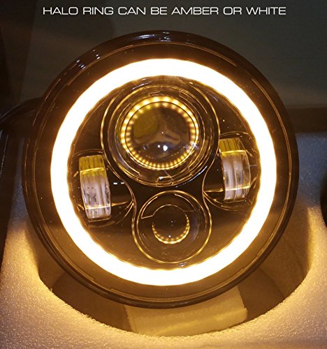 7 Inch Round LED Headlights + White Halo Eyes & (AMBER SIGNAL) The ultimate LED headlight upgrade. These GENSSI headlights offers LED low beam, LED high beams, and multi-function halo ring. If your car has sealed beams, this is the most effective, simplest and least expensive improvement in lighting you can make! Sealed beam headlamps were introduced in the 1930s to provide a consistent quality of headlamps. Prior to that, headlamp design was left up to the vehicle manufacturer and lighting ability varied greatly. The problem with sealed beams is that the lens, reflector and filaments are all part of a bonded assembly. When the filament burns out, the entire lamp is discarded.