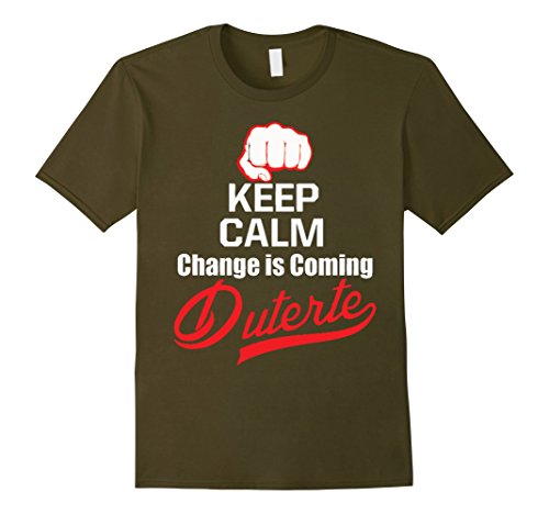 Men's Keep Calm Change Is Coming Duterte Du30 T-shirt Large Olive