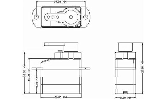 What?s the details of our servo? 1.S0020 is the industry?s smallest digital nano servo,small servo huge perfomance. 2. Custom long life potentiometer,with Precision Components.Powerful coreless motor. 2.Strong, Long-Lasting Nylon Gears. 3.High speed,mini size with high torque. 4.Market?s Most Reliable Micro Servo. What is the Specifications of our servo ? Item No. LH-S0020 Voltage: 3.7V ~ 6.0V Speed sec/60°(4.8V): 0.08 Torque kg/cm:(4.8V): 0.22 Torque oz./in.: (3.7V/6.0V): 2.8 Size in Millimeters : 16.2X8.2X16.5mm Size in Inches : 0.6X0.3X0.64?? Weight grams: 2.25 g Weight ounces: 0.08 oz Running current: 35mA Idle Current: 4mA Motor: Coreless motor Gear Train: Plastic Ball Bearing: None Connector Wire Length: 110mm Type: Digital servo