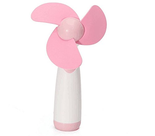 Specifications: Color: Pink Material: ABS plastic,foam cotton and electronic components Handle Length: 15 cm Base Diameter: 4 cm Blade Diameter: 10.5 cm Battery: 2 AA batteries(Not included) Suitable age: 3+ AGES Package included: 1 x Mini Handheld Fan