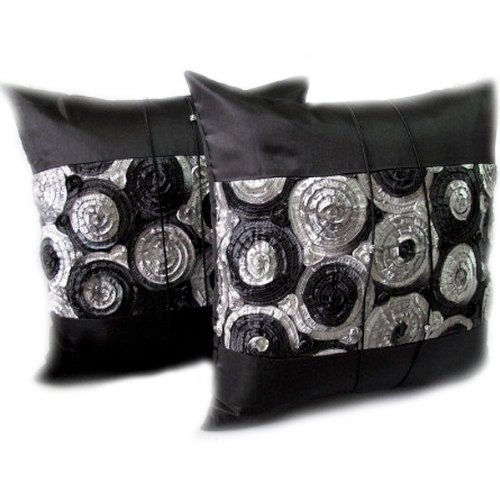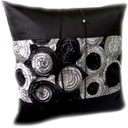 ThaiSmile Cool Rose Design Single Throw Cushion Cover/ Pillow Case Handmade By Thai Silk & Cotton for Decorative Sofa,car and Living Room Size 16"x16"