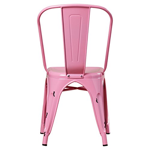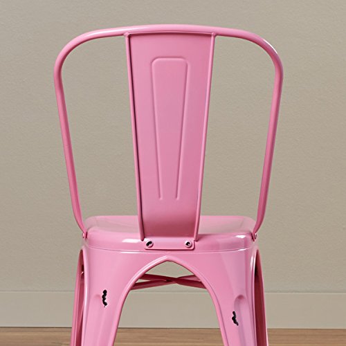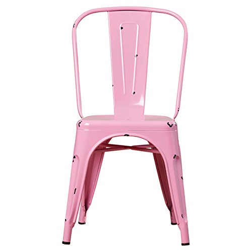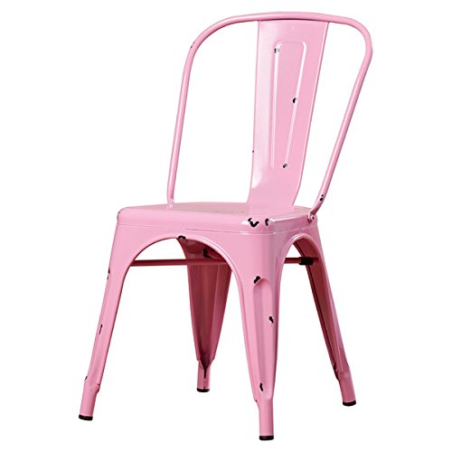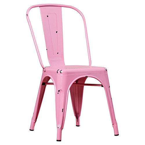 Enjoy with these durable, stackable metal cafe chairs. The antiqued finish and bold color options together offer a unique, modern design for any room in your home. Featuring rubber bottom leg pads to protect the floors in your home office, bedroom, living room, or dining room, these chairs are the ideal choice. Frame Material: Metal Number of Items Included: 1 Distressed: Yes Assembly Required: Yes