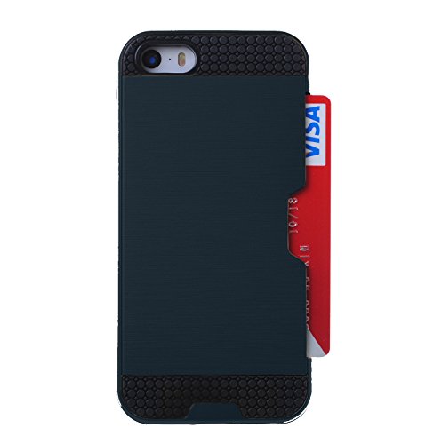 Case Art Plus [Full Degree Protection] Transparent Tempered Glass Screen Protector Film + [Card Slot Bumper] Super Slim Fit Light Case for iPhone 5/5S (Navy)