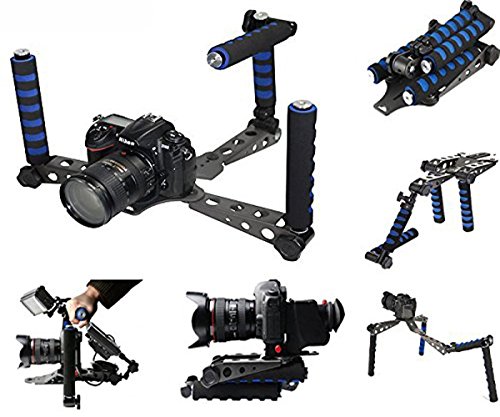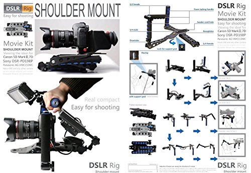 Feature : The DSLR Rig Movie Kit completely eliminates back neck and arms stress. It can extend your camera to any angle in any direction. Whether overhead, high angel or low angle shot, it allows you to use imagination to your own needs. Being the best DSLR stabilization system! How To Use: You can mount 7.0" or 11.0" arm onto it and then mount lighting or Monitor to use with your DV and DSLR camera. Every joint is rotatable and adjustable,portable.Small size that is good for carrying. Extend the rear arm for shoulder support . Adjust to use as one hand DV/Camera set, it can suit the way you needed. Compatible with: Canon 5D Mark II/1D/7D/550D/60D/T2i/600D ... Nikon D4/D800/D700/D300/D90/D5000/D7000/D3100... Panasonic AG-HMC153MC GH-1 GH-2 GF-1 GF-2 ... Sony DSR-PD198P NEX-3 NEX-5 ... Any other DSLR Cameras and Camcorders Specification: Double-handle allows shooting more stabilization Small foldable design that you can carry it around easily Transformable design for different shooting style Extendable rear arm A lot of 1/4" screws for LCD monitor, Light, Mic or other accessories mounting All hand grips and joint are rotatable and adjustable Non-slip rest pad on all hand grips Weight: 1.5kg Package size : 31x24x9.5cm(Folded) Package included: 1x DSLR Rig Shoulder Mount Kit 1x Hex Driver Warranty Policy: 12 Months Limited Product Warranty (caused by non-artificial quality issue, excluding man-made damage, misuse or force majeure).