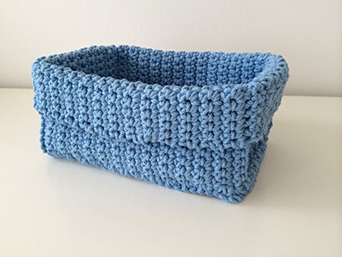 This is a made to order handmade crochet 100% cotton spa basket, that is flexible in its design with a fold over top. It is ideal for storing items in the bathroom, nursery or bedroom or any room of your choice, such as make up, jewellery or craft items. The basket is 24x15x13cm/9.5x6x5inches. There are also a number of colours available and I can send you a colour chart of the yarns I have available. Choose a colour to compliment your room or a soft neutral to go with any décor. Colours may look slightly different to the actual item due to colour variations of your display. The yarn used is 100% cotton cord. Washable at 30 degrees C/85 degrees F/Cool wash. This listing is for the basket only and not the contents.