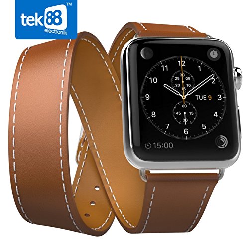 Tek88TM Apple Watch Replacement Bands are stylish and elegant, making them an ideal band replacement for Apple Watch. Personalise your Apple Watch with this genuine leather replacement band.Genuine leather exterior and microfiber interior guarantee your comfort. Tek88 bands come with Apple Watch Lugs on both ends which simply slide onto your Apple Watch both precisely and securely. Easy to install and remove. Metal adjustable buckle clasp is ready for band interchange. 9 Pin Holes for fine tuning and comfortable wearing. Fits 6.5 - 7.7 inch wrist.