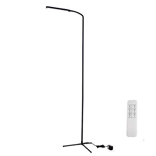 This is a remote control or touch control LED floor lamp, has a series of adjustments, fully dimmable. It has 2 sets of LED lamp beads, 5W LED, total 10.5W (they work separately). Only 6W power output but offer 500 lumens ultrahigh brightness, more energy saving. It is very thin and lite but very sturdy and solid. Even on heavy pile carpet with minimal wobble and does not will fall over without a good intention to knock it down. The light angle is fully adjustable at the neck, all angles, all directions and it stays where you set it. It has quite a range of brightness and can be angled toward your hobbies. It has a great timer feature evident on the all function remote control where 15, 30, 45 and 60 minute auto-off timer options. Also a just night light model in the room if need be. Nice that they don't add extra heat because of the LED bulbs. In addition, the LED light never has to be replaced because it is integrated into the fixture and expected to last over 20 years. It works beautifully: perfect height and size, design, brightness, etc. Technical Details: Adapter: 100-240V AC 50-60Hz / 12V DC 1A Dimmable: Brightness (12 levels) / CCT (10 grades) Color Temperature: 3000-6000K Wattage: 6W Output (2 sets of LED lamp beads, 5W LED, Total 10.5W) CRI: RA>85 Luminous Flux: 500 Lumens (Max) Service Life: 30,000+ rated hours Texture of Material: Metal & Plastic Switch Model: Wireless Remote Control & Hand Touch Control Package Included: 1 x LED Floor Lamp 1 x Wireless Remote Control 1 x Power Adapter 1 x Product Manual Please Note: Due to the limitations of FBA policies, there is no battery inside the package. It needs additional 2 AAA batteries for remote control. Thank you for your understanding.