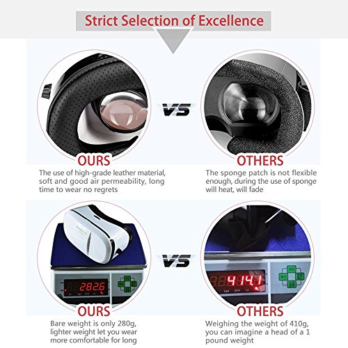 Innovative Design Comfortable Wearing - Here comes the interesting 3D IMAX MOVIES or GAMING Experience? SEPCIFICATIONS: Innovative Design 3rd Generation Virtual Reality Glasses Widely Welcomed Gifts Choice! Material- ABS Material Piano Paint Technology & Japan imported aspherical lens distortion. Light Weight of 280g for Relaxing Wear. Built to last Solid design, aim to be your funny partners! Effect: The equivalent of five meters away to see 320-inch screen . Compatible Models Fits for iPhone, Android phones and Windows phones series within a screen size of 4.0-6.0 inches. Note: -Pupil Distance (PD) and Focal Distance (FD) Button need be rotated with Moderate force! -Vedios in 3D styles is required to the best effect. -If you need to wear your Myopia glasses, you need to first put your Myopia glass in the headset first and wear the whole sets on head when everything is ready! -If there's any puzzle in operation, please contacr us via FAQ & Buyer Message at the first time, we will be active!