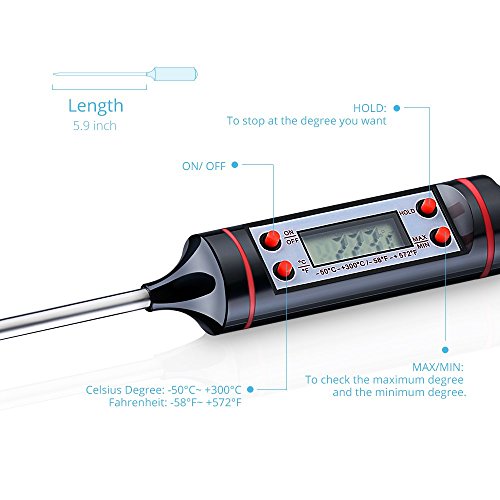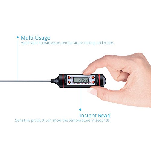 Teswell Digital LCD Stainless Thermometer Versatile and convenient thermometer for kitchen or outdoor cooking Humane Design The slender probe tip avoids putting huge puncture holes in your foods which means the meat juices stay in the meat where they belong Baby Care Save your worries from wondering the suitable temperature of your baby's bath water and the milk. The accurate temperature results help you to take good care of your baby and your family Widely Application Work on all types of foods, makes cooking and grilling easier. You would become your own unstoppable kitchen master chef instantly Handy Storage Case Put the thermometer in this unique slim-fitting case which comes with a funky easy-grip handle Package included: 1x Thermometer Warranty: 45 days money-back and 12-month, worry-free Guarantee!