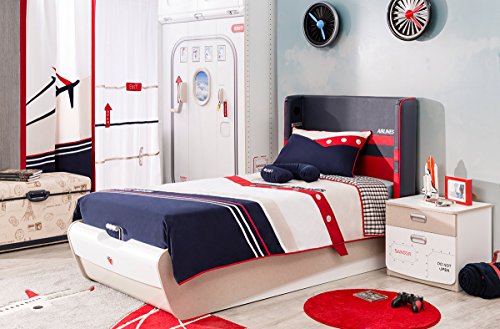 Sleep in tailored comfort with this red, white & blue cotton bed cover that reverses to a plaid pattern of soft blue, tan & cream. • Great Match to "First Class Airplane" themed Bedroom • THE BED IN THE PICTURE IS NOT INCLUDED