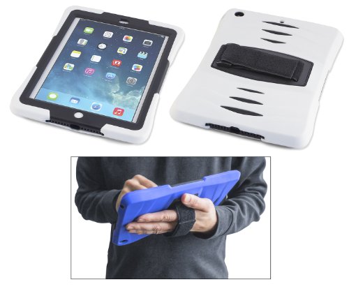 The Caseiopeia Keep safe case for the iPad Air is a one-stop solution for added protection for the iPad Air. Designed with parents, students, and teachers in mind, the Keep safe case is ideal for daily use in any classroom or work environment that requires extra protection from life's little mishaps. With multiple layers of shock-absorbing protection, the Keep safe case provides the extra protection necessary for school, work, and office. The hard plastic inner shell holds the iPad in place while the soft silicone outer layer keeps the corners protected. The Keep safe case also comes with a screen protector which, when snapped into place, keeps the screen free from fingerprints and smudges while allowing a reliable touch-sensitive experience. All cutouts are specific to the iPad Air including headphone jack, speaker/charger, cameras, and mics. The Keep safe case is just what you need in your classroom or work environment to help keep your iPad Air safe and sound. The Keep safe Strap case features an adjustable hand strap on the backside of the case, which can be used loosely or cinched down for freehand use.
