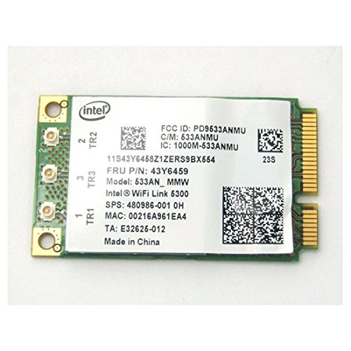 The Intel® Ultimate N WiFi Link 5300 Series is a family of IEEE 802.11a/b/g/Draft-N1 wireless network adapters that operate in both the 2.4 GHz and 5.0 GHz spectra. These adapters deliver up to 450 Mbps of bandwidth2; in addition to providing a host of features that enhance today's mobile lifestyle. Features: Up to 450 Mbps of bandwidth2 Advanced security via 802.11i Up to 2x greater range2 Easy-to-use Intel® PROSet v12.0 WLAN Software4 IEEE 802.11a/b/g and Draft-N1 compliant Support for Cisco Compatible Extensions* v4 Wireless support for Intel® Active Management Technology Performance-optimized with Connect with Intel® Centrino® processor technology certified Access Points Compatibility: R400, R500 SL400, SL500 T400, T500 W500, W700, W700ds X200, X200s, X200 Tablet X301 Y550, Y650 Package includes: 1 X Intel 5300
