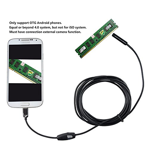 Application Fields: Intraoral camera system ; underwater camera ; waterproof Micro-cameras; motor vehicle detector; sewer pipeline detector; search and rescue ; criminal and custom detector ; archaeological detect ; the PCB detection ; home care ; aviation and space industries ; care and tractors industries ; petroleum drilling industries ; constructions and so on.1. Easy to use by being pulled in and plug. Just download the app from Depstech CD driver (safe driver, color is green for smartphones). 2.child Reminder: Upload Your Mobile 50% power to make sure it will refuse to show images when your energy is low. 3.Android system, support OTG and cell phone camera is compatible with UVC.Not for Iphone. Support OTG, most mobile phones are currently supported OTG can be used. Technical specifications: Cable length: 16.4 ft Camera head outer diameter:5.5mm Built-in 6 LED light (with Brightness Control) Resolution: 640 * 480 Pixel: 1.3 million Focal length: see 3-8cm may 6cm most clearly (non-self-focusing) Frame rate: 30 frames per second Waterproof level: IP67 (waterproof product, but please do not long used in deepwater) Package include: 1 x USB endoscope 1 x CD driver Depstech 1 x PC adapter 1 x Side shot three-piece Why choosing us? 1.Our Products welcomed by most people are in good quality 2.We are cooperating with reliable express companies, for providing the best services for customers 3. Our Nice after-sale services are accpted by Tens thousands of customers