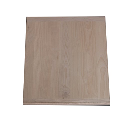 Economy Replacement Pull Out Cutting Board 20" wide x 22" long x 11/16" thick. Alder construction, machine sanded to 180 grit. Reversible with one Alder breadboard end and one Red Oak breadboard end. Finger grooves on both ends, on opposite sides of the cutting board. Edge details: convex all four edges. This cutting board comes un-finished to allow you to match your cabinets. It must be finished with cutting board oil before first use, according to the enclosed instructions.