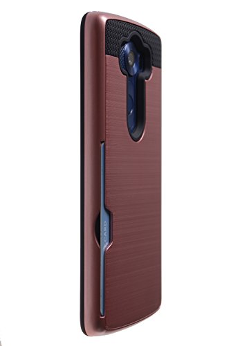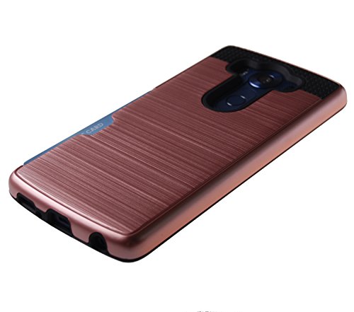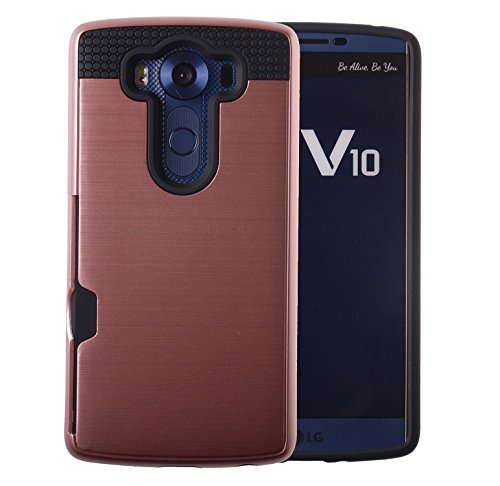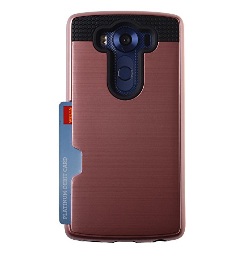 Case Art Plus [Full Degree Protection] Transparent Tempered Glass Screen Protector Film [Card Slot Bumper] Super Slim Fit Light Case for LG V10 (Rose Gold)