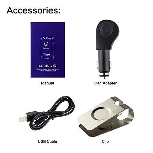 WHAT THE SPEAKERPHONE CAN DO: *Answer calls *End calls *Reject calls *Voice dialing *Announce calling number *Last namber redial *Personal connectivity/Speaker switch(transfer calls easily to phone or phone speaker via one button) *Adjust volume *Play mobile Phone music, guidance from a GPS app *Advanced Multipoint-connecting to two active bluetooth devices simultaneously, max to 8 mobile phones *Dormant automatically after the disconnection with bluetooth device to 10 mins Specification: *Net weight:64g *Size: 98 * 57 * 15mm *Talk time up to 17 hours *Standby time up to 1000 hours *Charging time approx. 2.5 hours *Effective range: 10 meters *Build-in DSP noise suppression and echo cancellation fuction *Status Light: ready-to-pair, call status, connection status *Operating range up to 10 meters(approx. 33 feet) *Bluetooth profiles: HFP, HSP, A2DP *Bluetooth specification version 4.0 *Build-in digital amplifier for enhanced audio quality *Rechargeable battery with charging option for car charger of USB cable Package list: 1× Speaker Phone 1× USB cable 1× Steel clip 1× Car charging adapter 1× User munual